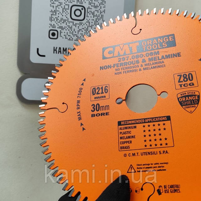 СМТ 297.080.09M Пила HW D=216 F=30 Z=80 K=3,2/2,8 <-6° з негативним кутом атаки для кольорових металів, пластику та ламінату