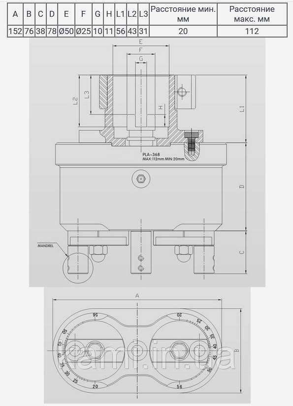 Тришпиндельна свердлильна головка з регулюванням відстані від 20 до 112 мм